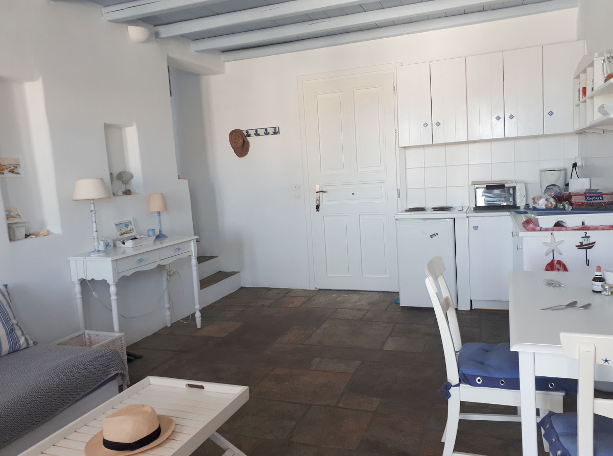 Beautiful apartment in a complex of traditional houses in Livadi with 2 bedrooms, bathroom, living room with kitchen and terrace overlooking the sea and Chora. 100 meters from the center and 250 meters from the beaches of Livadakia and Avlomonas.